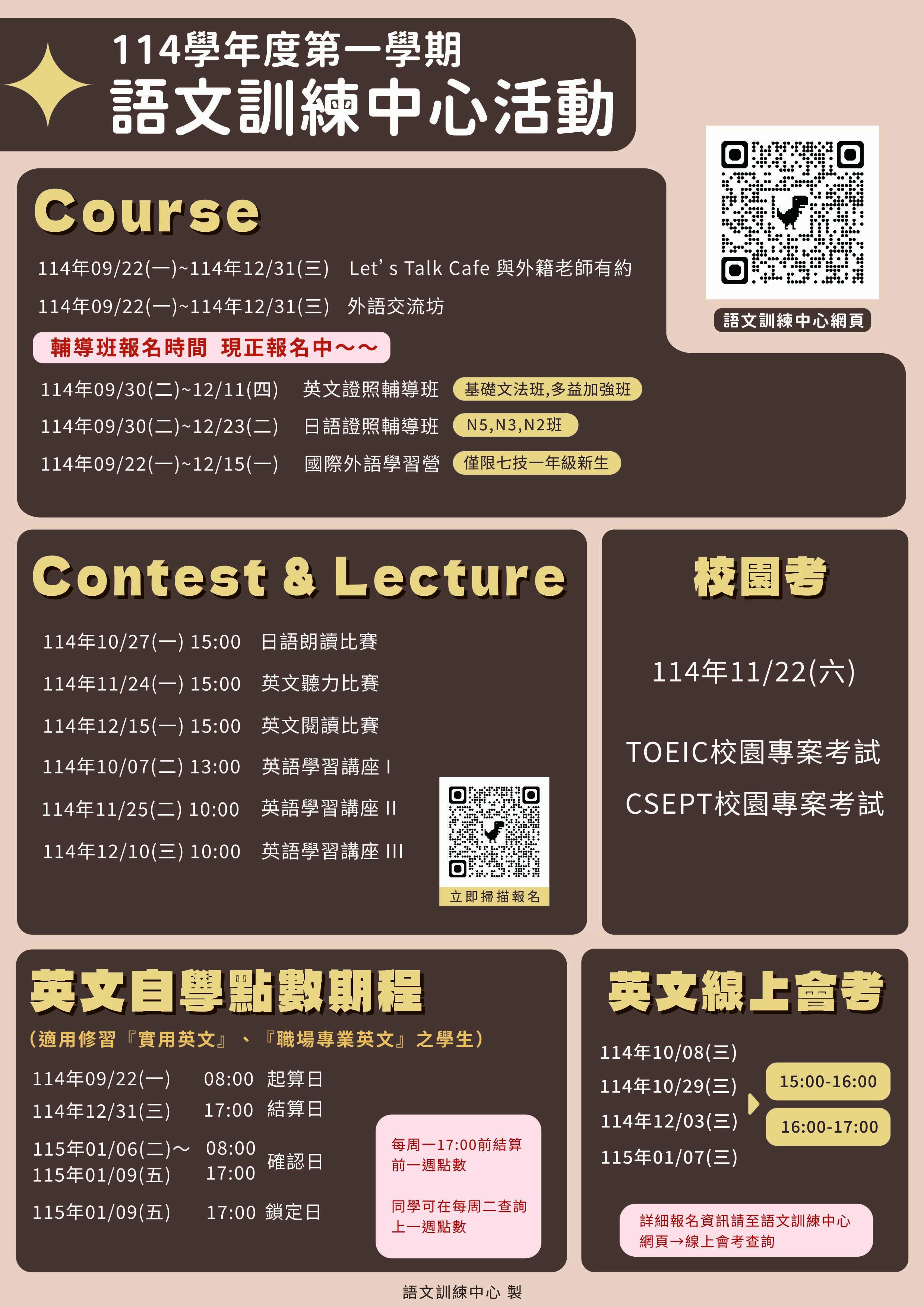 【活動】114學年度第一學期 語文訓練中心活動