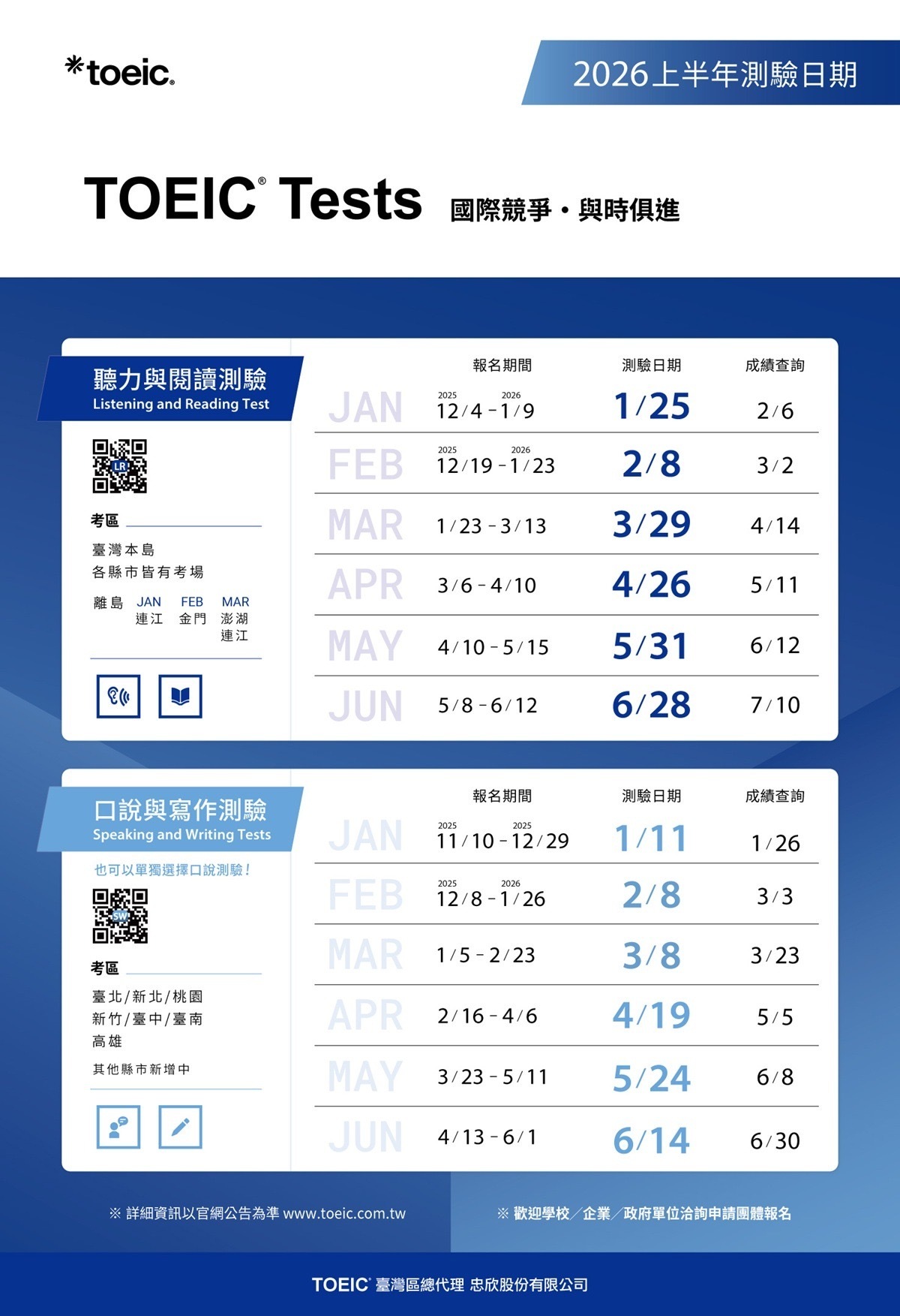 【語言測驗-TOEIC】2026年上半年TOEIC舉辦測驗日期